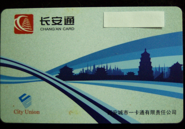 以前、バス事情を書いた時にバスカードを紹介しましたが、今では統合されてバスと地下鉄のこの共通カードになりました。もし古いカードを持っていたら、公交五公司に持って行くと交換してくれます。(ちなみに上の写真は2年前に切り替えたものなのでデザインが古いです。今は大雁塔か鐘楼か何かのデザインのはずです。)