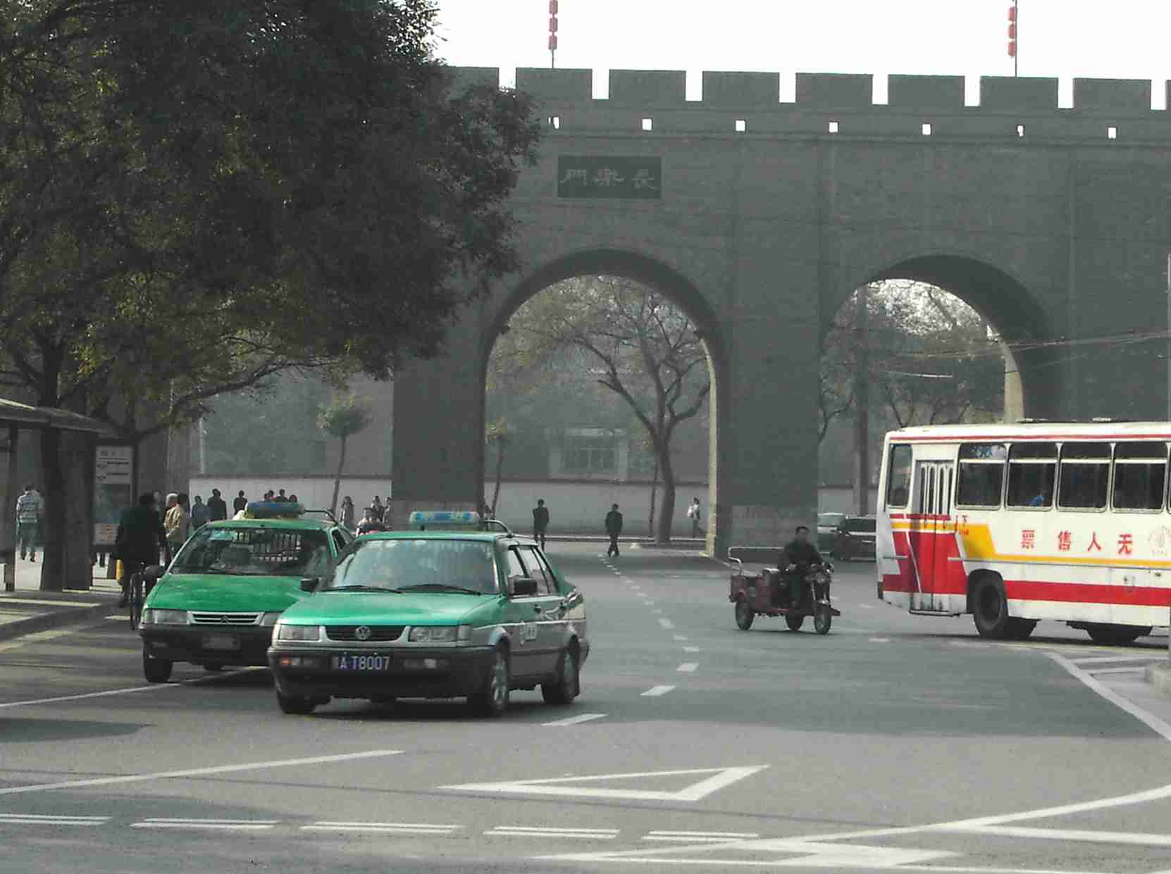 西安は観光地だからか,市民の車所有率が低いのか分かりませんが,タクシーがとても多いです。主要道を走る車の半分がタクシーかと思えるほどです。なので,どこでも簡単にタクシーをつかまえられます。(ちなみに,こちらの人はタクシーを使うことを”打車”(ダァ チャー)と言います)。バスに時刻表がなくかなり待たされることがあることを思えば,お金と言語力とスリルを気にしなければタクシーはかなり良い乗り物だと思います。時間があまりない旅行ならタクシーのほうが良いでしょうね。でも,いずれにしても土産話のネタとして一度くらいは中国のタクシーに乗ってみて欲しいですね♪