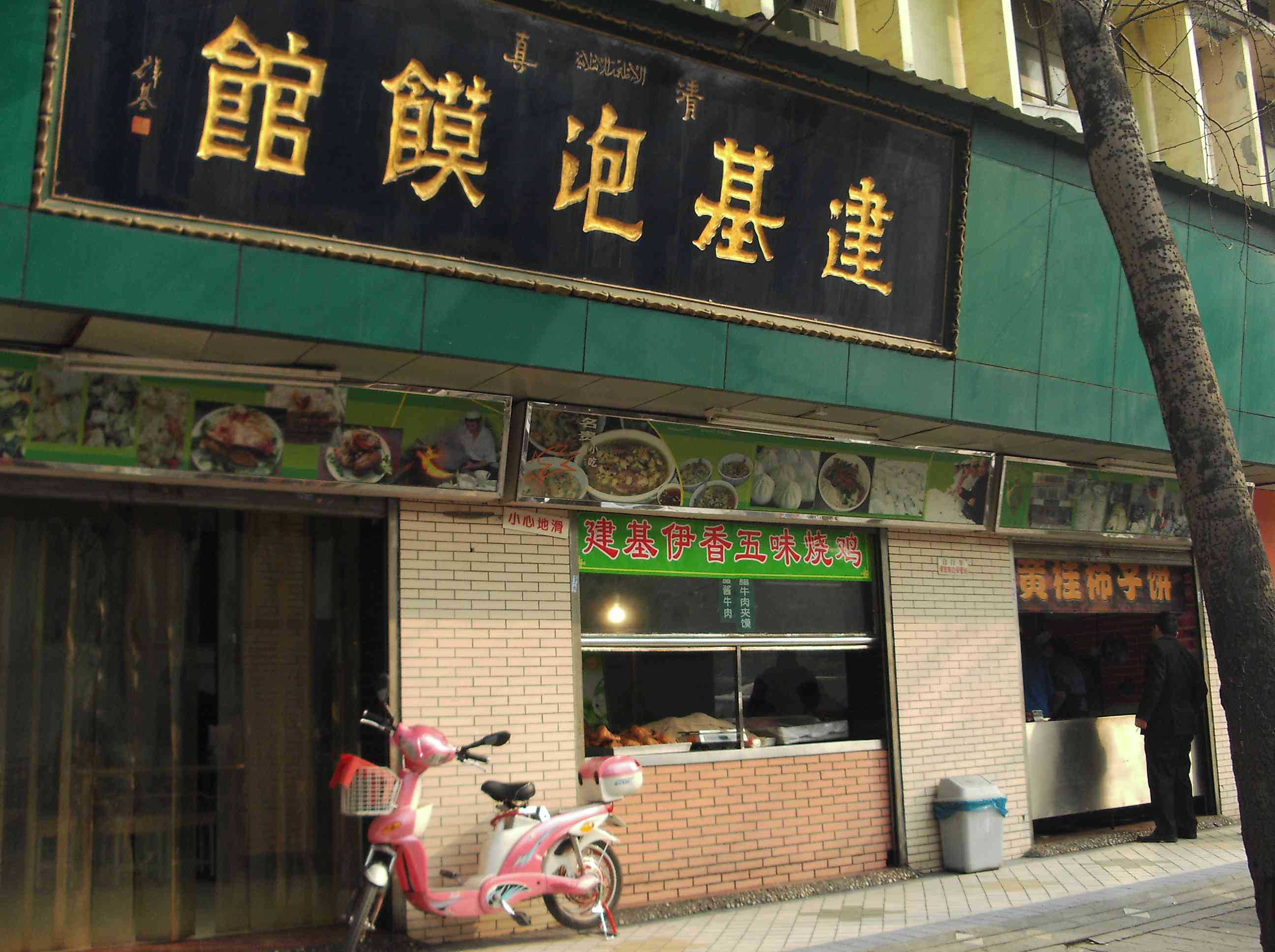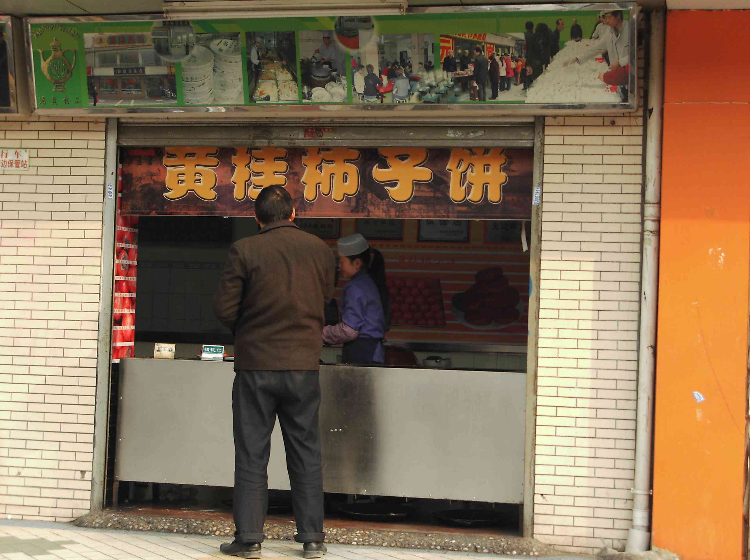 南稍門のバス停のすぐ前にあるお店です。ここは基本的に泡馍(パオモー)店なのですが,右側のブースで柿子餅(”シーズビン”と読みます)も売っています。