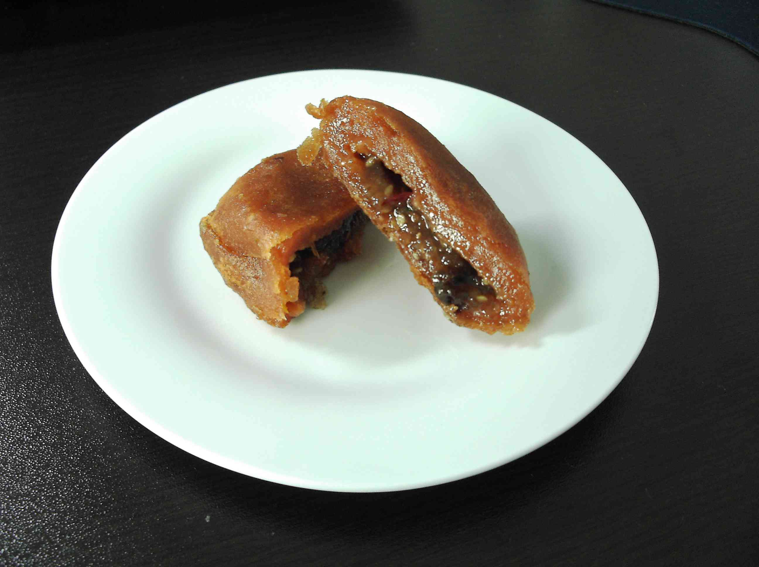 西安のお菓子にしてはかなり甘いので,日本人にもおいしく感じます。周りのおもちは柿の風味と砂糖の甘さに包まれていて,中はしっかり味のある独特のトロトロあんです。
