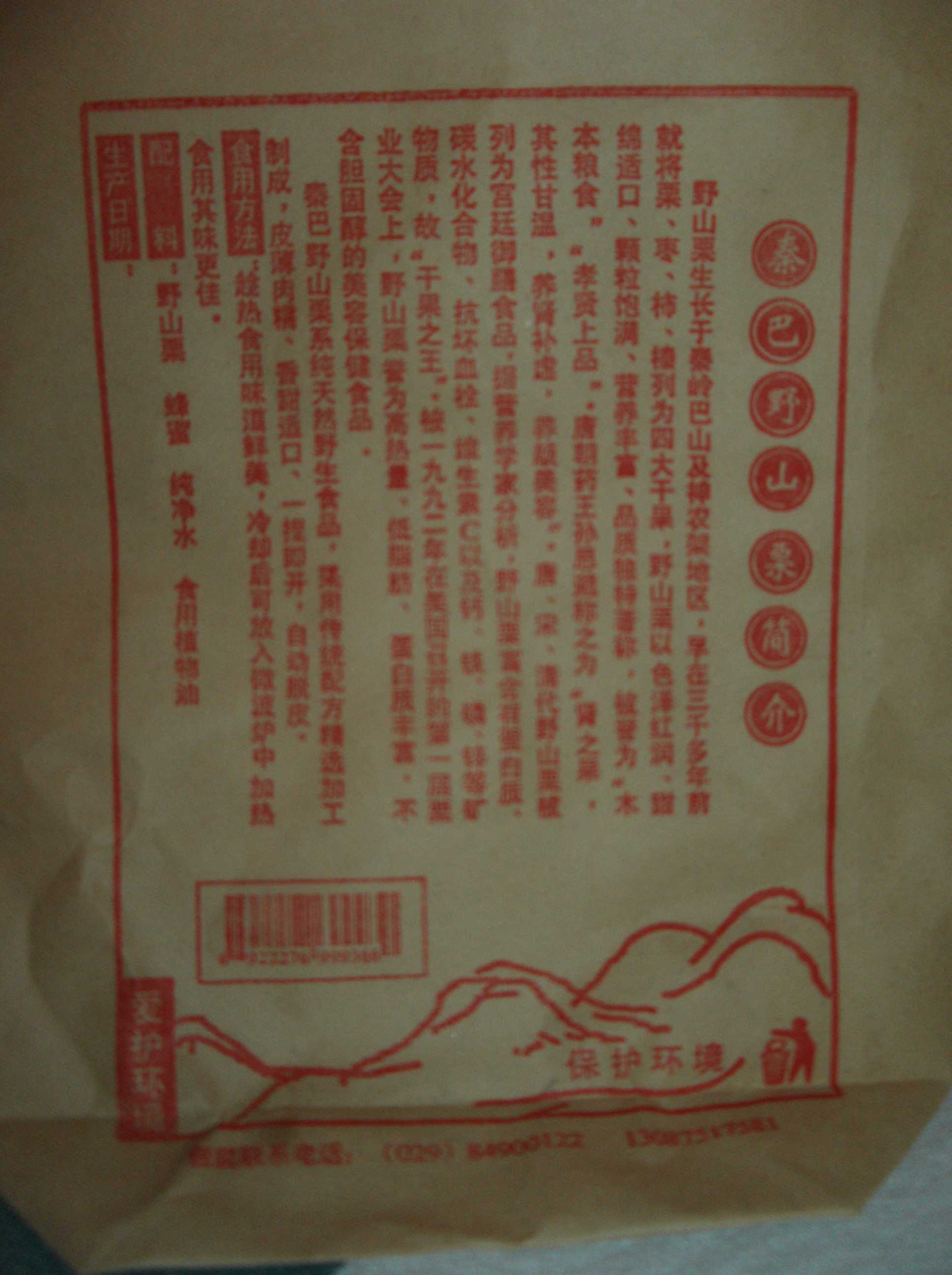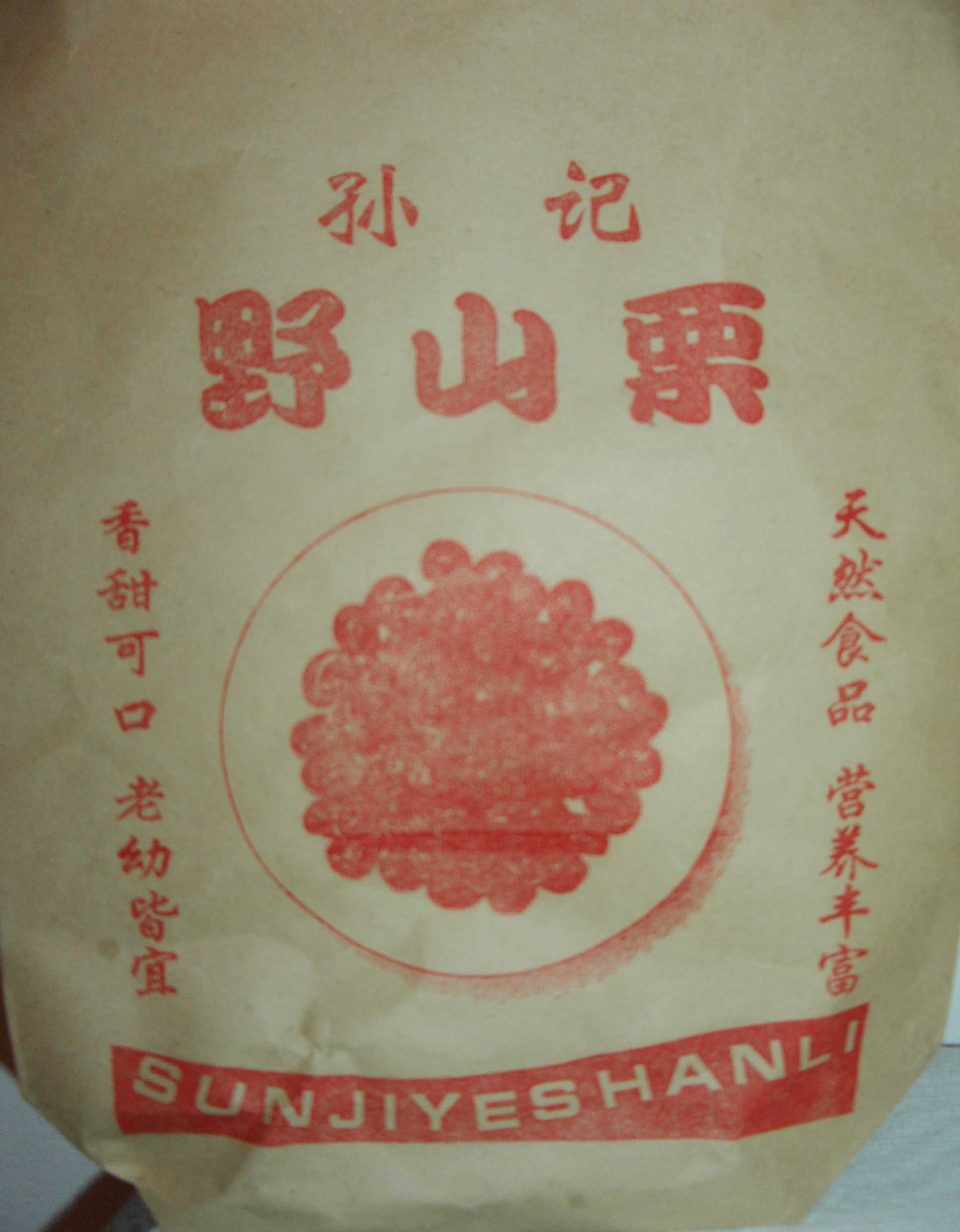 一行目に「秦嶺巴山」と書いてありますが、中国の北と南の境目となっている秦嶺山脈に属する山で、気候もこの山脈を境に大きく異なっています。西安市のすぐ南にも横たわっている山脈ですが、この山で採れるのがこの栗です。