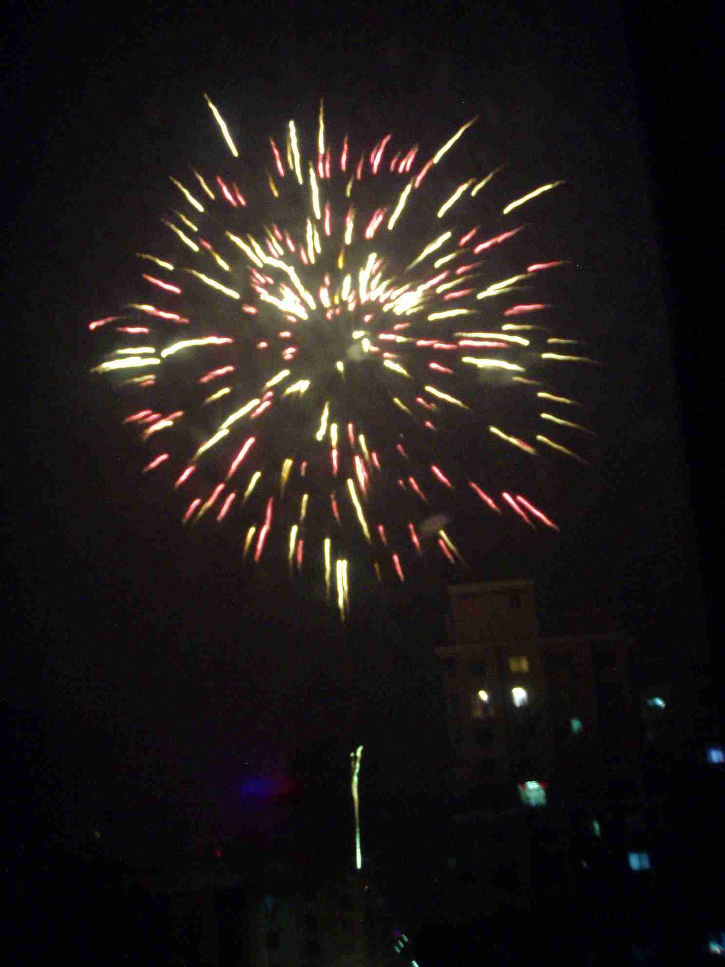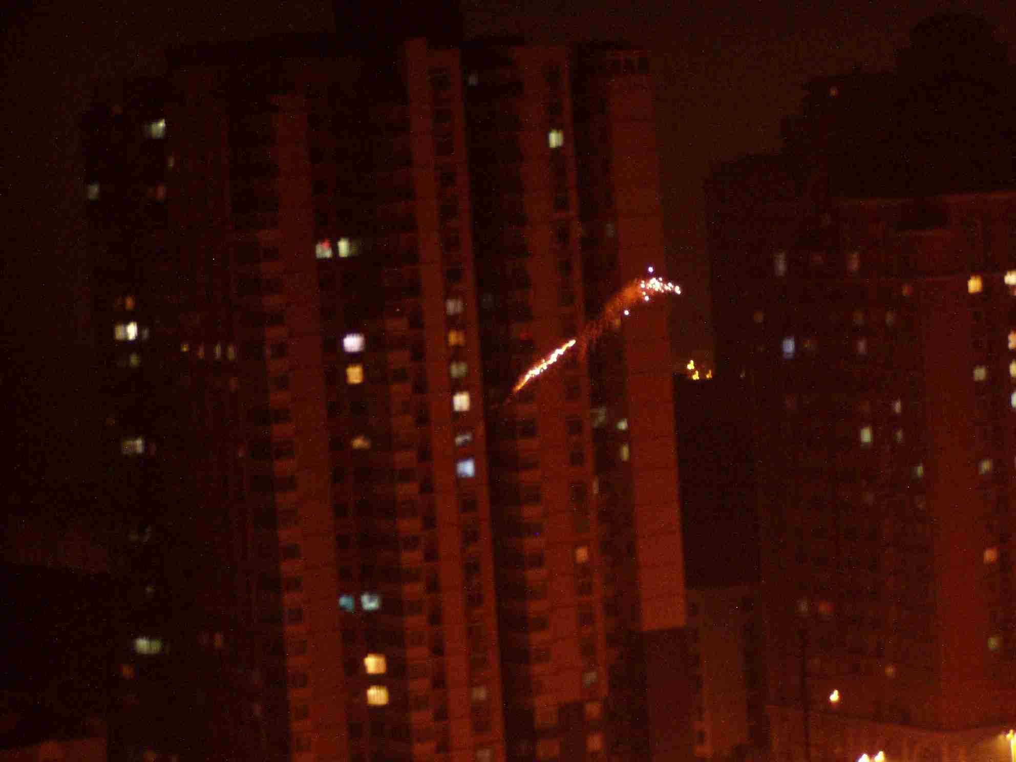 マンションの窓から大きな花火が連続で飛び出していました。あの家は火事にならなかったんだろうか…。