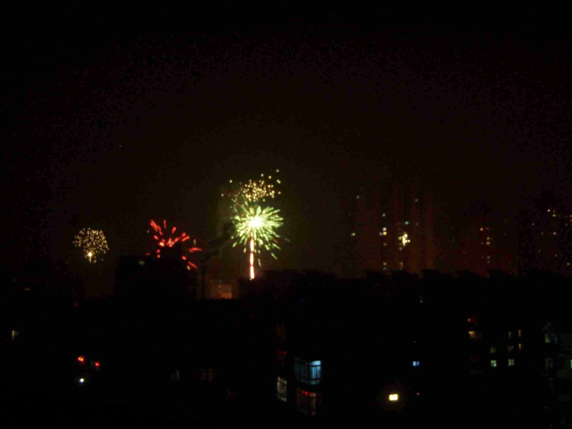 こんなのが11:30頃から12:30頃まで続きました(汗)。そして,だんだん花火が少なくなってきたかと思えば爆竹を鳴らし続け,2時前まで続きました。(さらに,朝早くから爆竹で起こされました(涙))。かなり寝不足です。いやあ,中国パワーはスゴイ!(…あ,ドンドーンって,まだ今晩もやってますよ!いつまで続けるんだろう…)