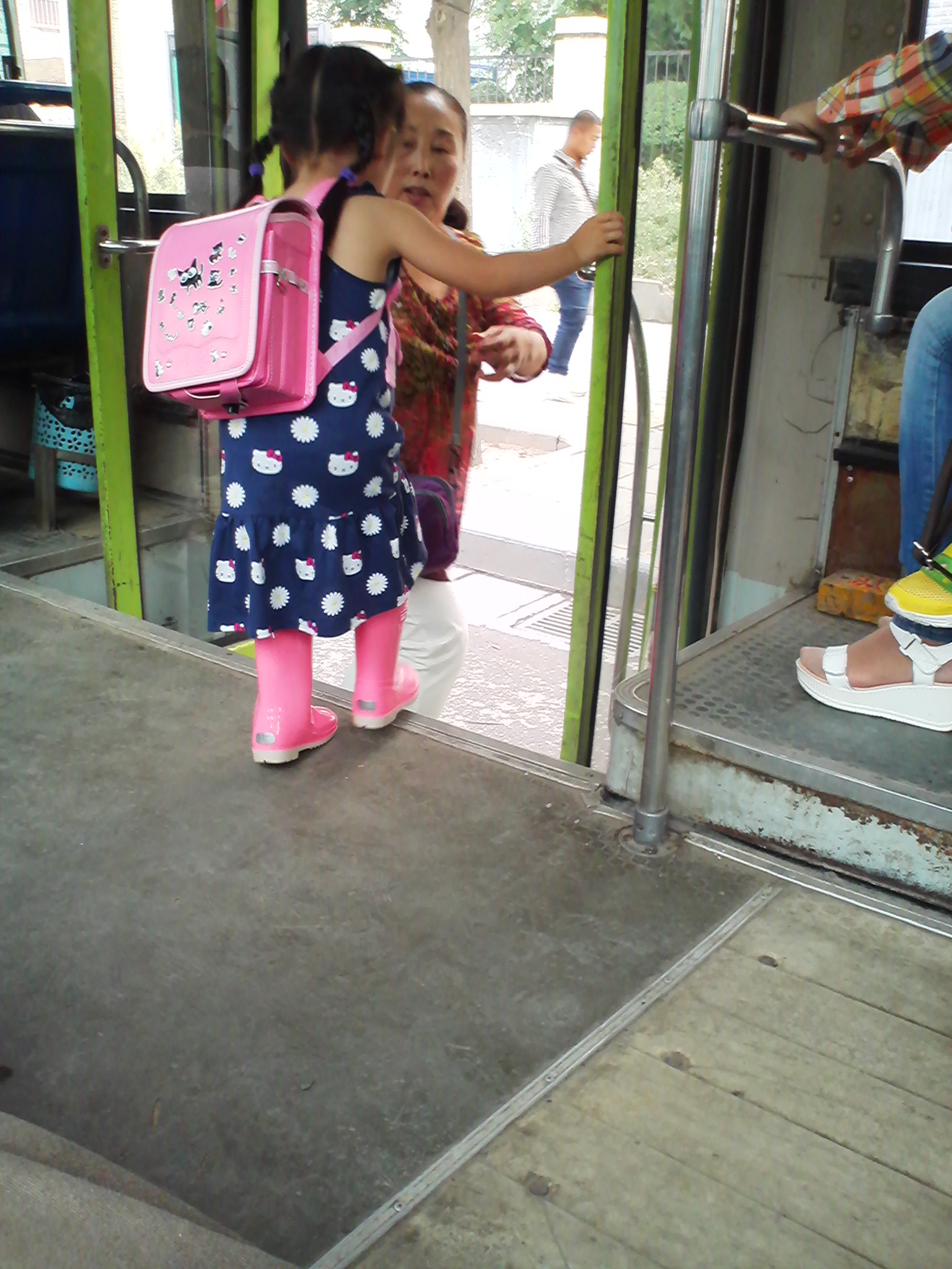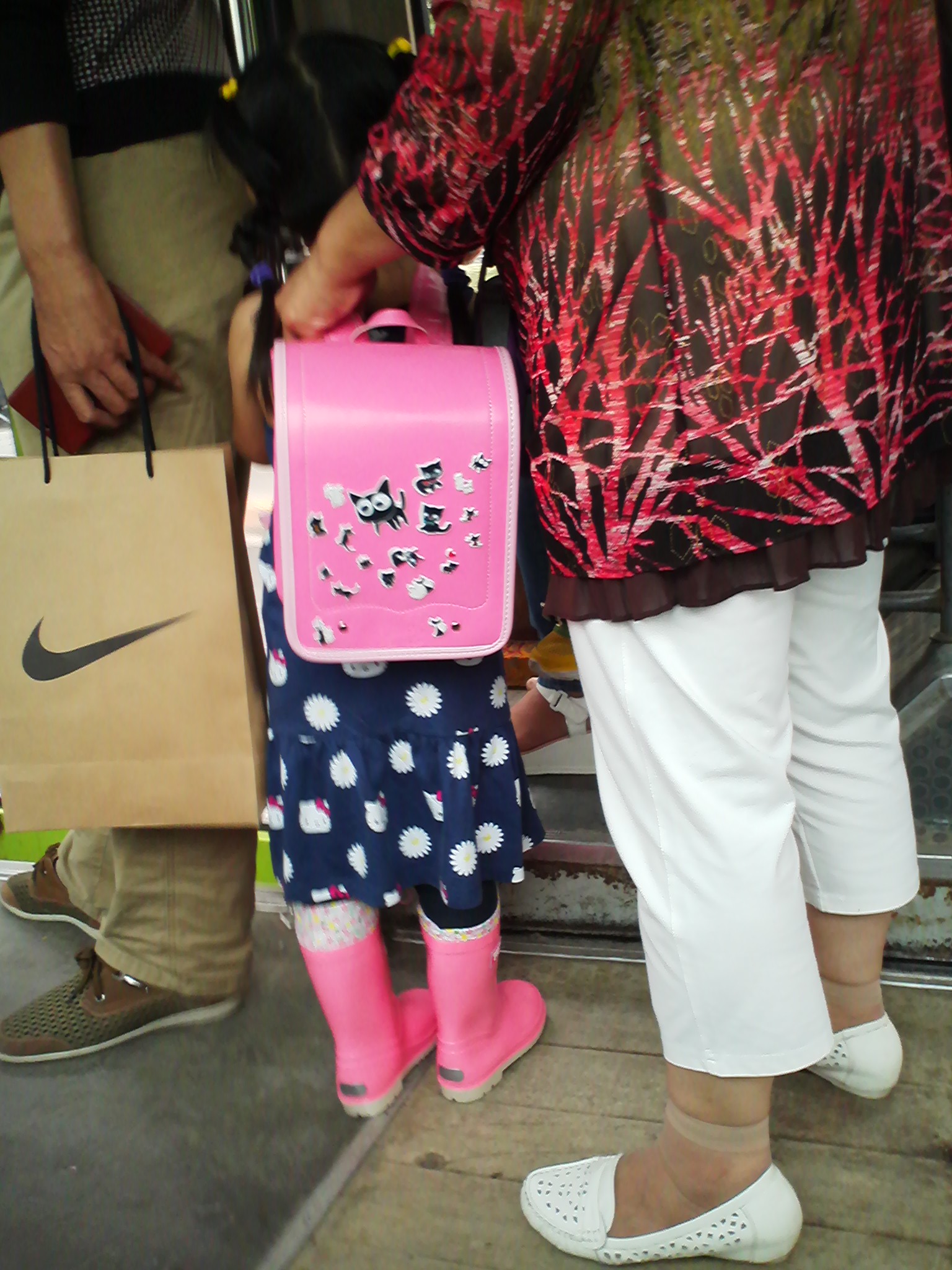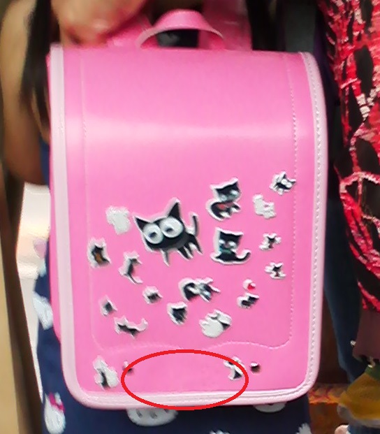 いわゆる”天●のはね”の宣伝で有名な“セ●バン”のランドセルでしょうか?輸入品に見せたニセモノではないかと思われますが、ひょっとすると日本からの輸出バージョンなのでしょうか?日本だと珍しくないんですが、こちらでは非常に珍しい形なので、とても目立ちます。