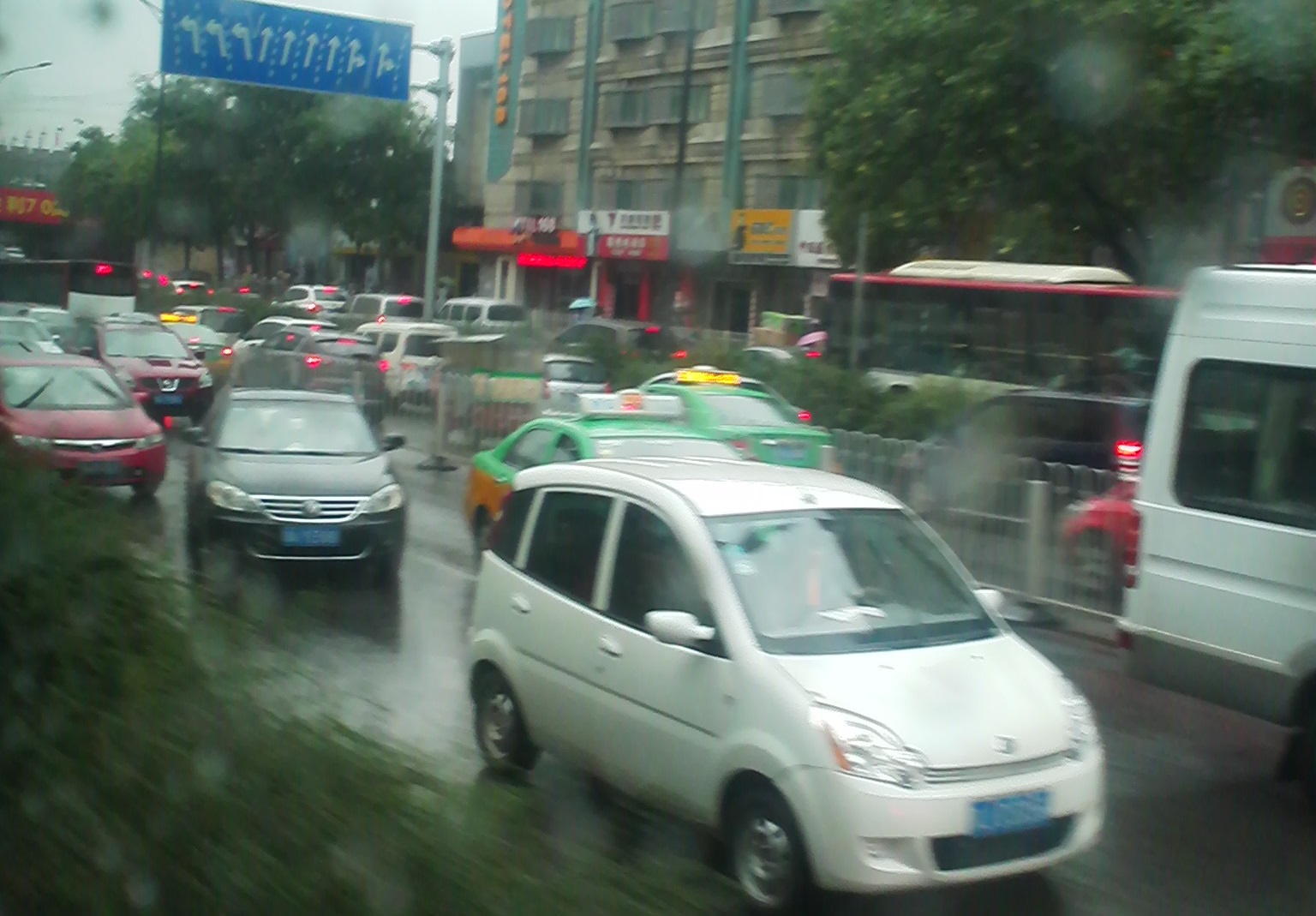 夕方はそうでなくとも車が多いのですが、小雨とは言え雨が降るとご覧の通り渋滞です。