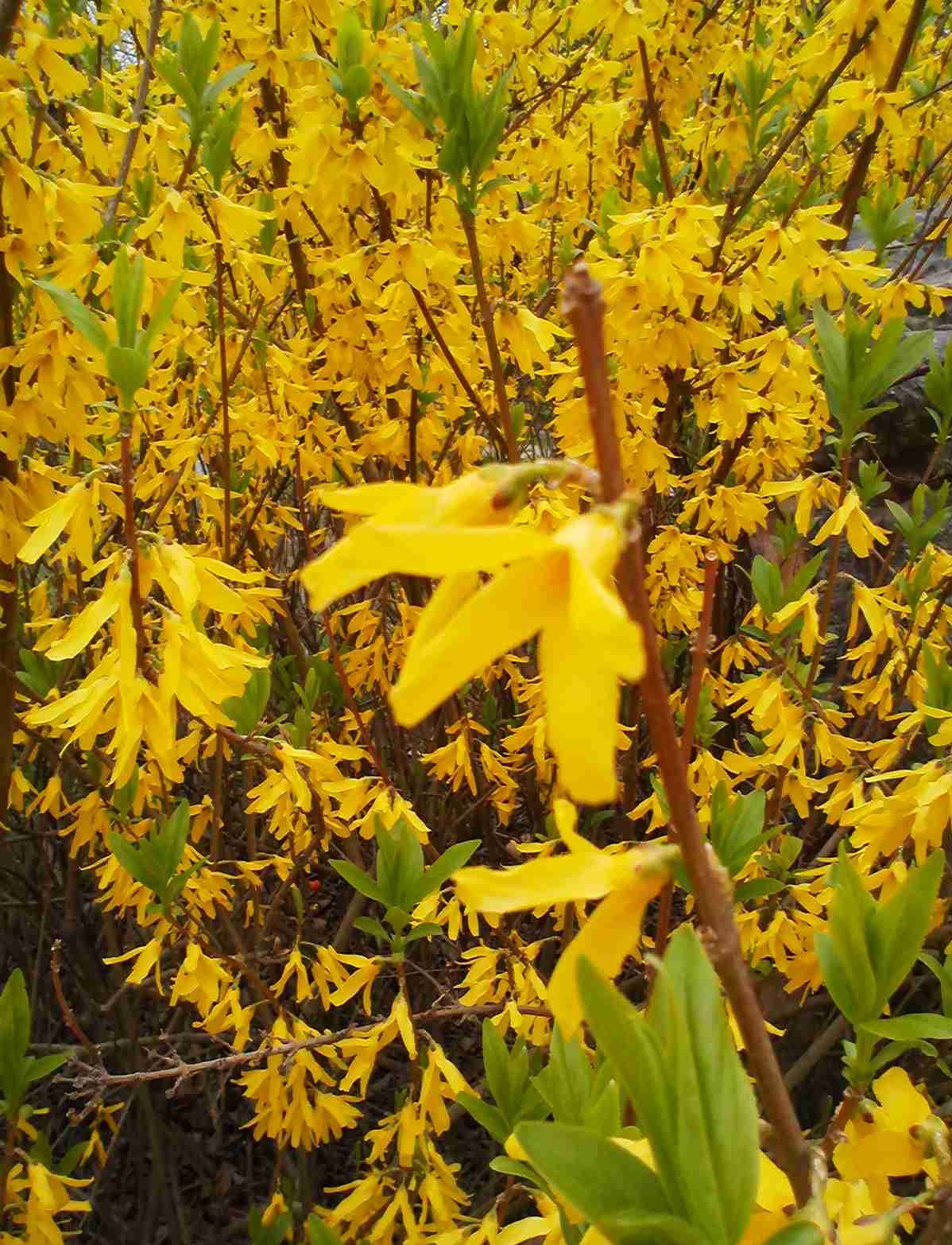 これは迎春花。春を告げる、一番初めに咲く花です。