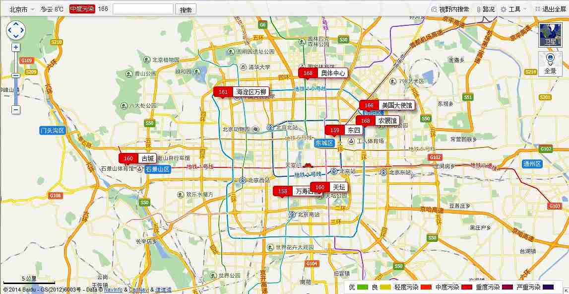 大気汚染と言えば、最近「バイドゥ」(百度)の地図を見ていたら、あることに気づきました。