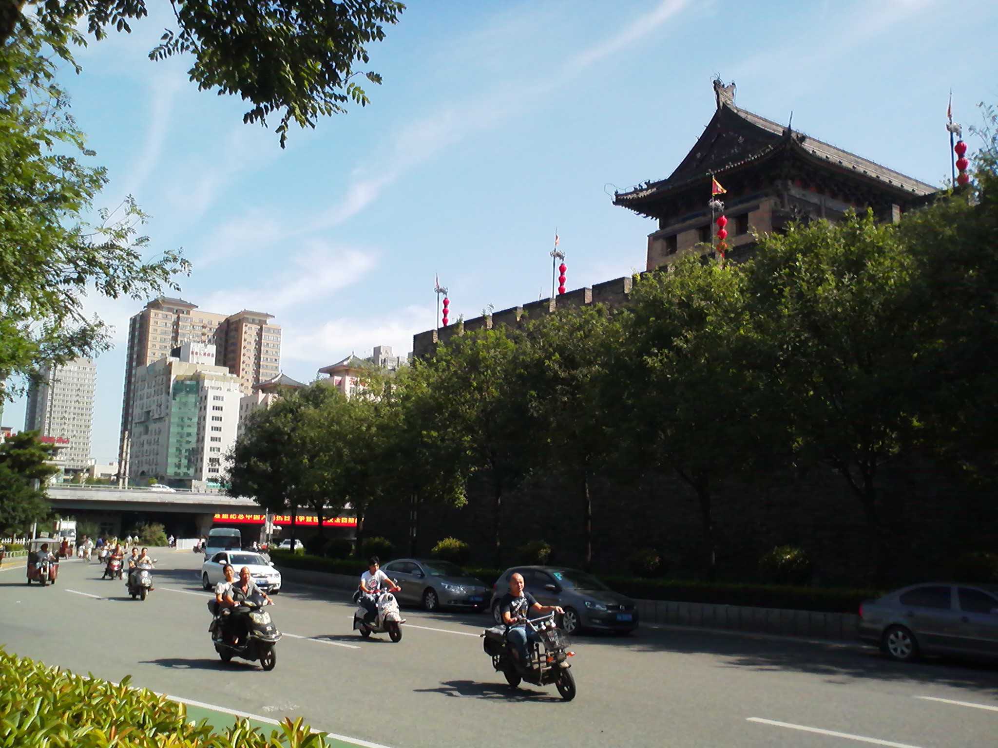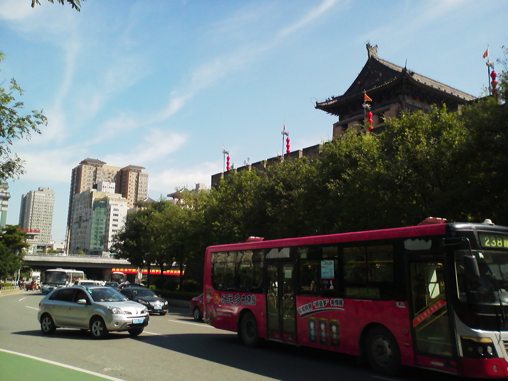 こんなお天気の日は街がとてもキレイに見えます。特に、西安最大の特徴の一つ、“城墙”(城壁)は青空に映えて風景に趣を添えてくれます。