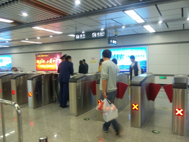 前編で書いた「長安通カード」をかざすだけです。切符を買って乗らなかったので定かではありませんが、確か切符もかざすだけで投入する方式ではなかったと思います。