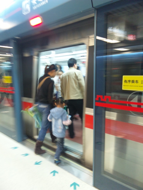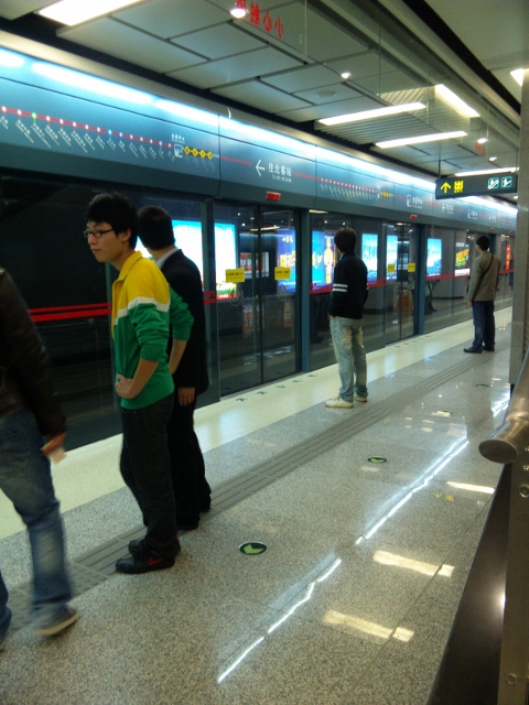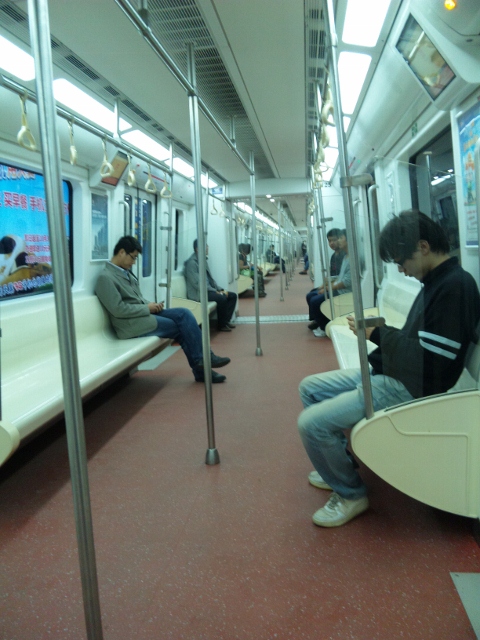 西安人は地下鉄初めてな人も少なくないからか、若干緊張気味でソワソワしてるように見受けられました。座席から珍しそうに車内をキョロキョロ見渡していたり、すぐに降りないのに空いている奥のほうへ行かずにドア付近にかたまって窮屈そうにしていたり、対面座席に慣れてないので向かい側の人に見られているように感じて絶えずチラチラと気にしていたり、という人が1人や2人ではありませんでした。まぁそのうち、北京や上海みたいに初めから何でもなかったかのよう平然とした顔で乗るようになるんでしょうけどね。