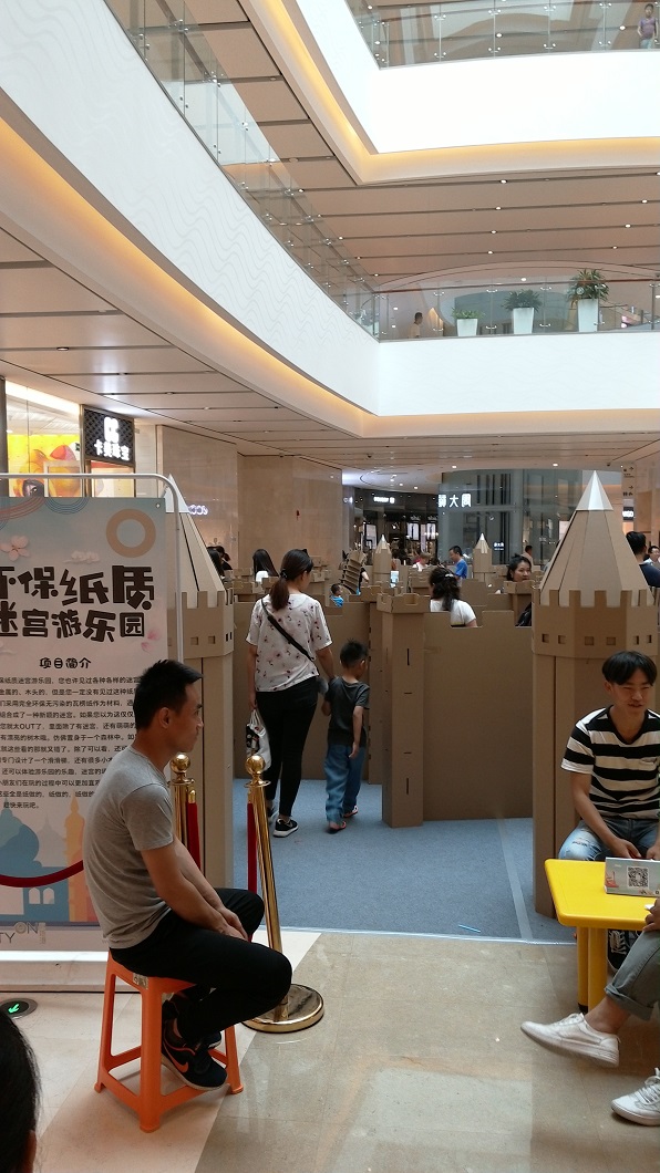 また、1階の別の場所では、段ボールで作ったお城が用意されていて、これまた直接壁に自由にお絵かきして良いことになっていて、たくさんの親子連れが中に入っていました。