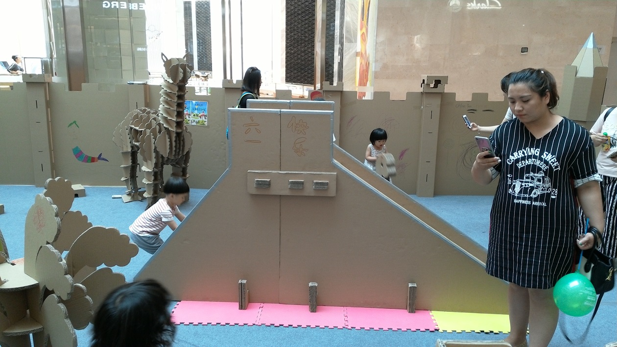 また、段ボール製のすべり台まであって、子どもたちはとても楽しそう。親御さんたちはスマホで子どもの写真を撮るのに必死でした。